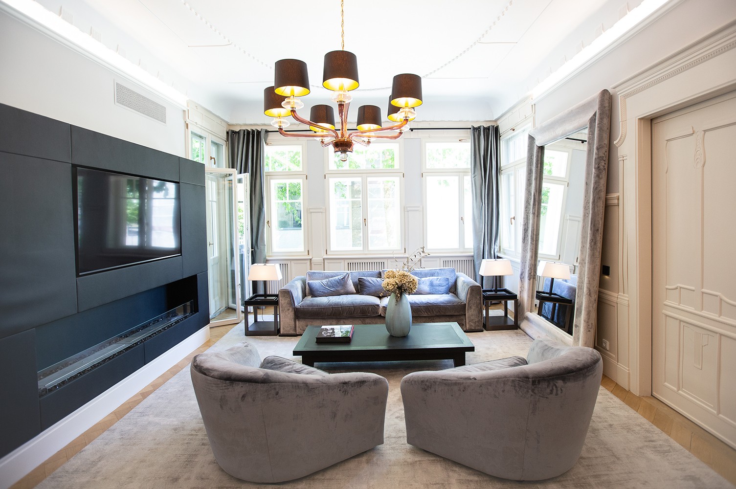 Eine 1903 erbaute Villa in direkter Nachbarschaft zum Palais Lanz in der Mannheimer Oststadt – ein edler Ort mit besonderem Anspruch. Vieles war vorgegeben, manches unwiderruflich verloren. Ziel war es, den Glanz der Kaiserzeit neu zu interpretieren und mit modernen Akzenten wieder aufleben zu lassen – durch hochwertige Materialien und einen großzügigen Umgang mit dem Raum.