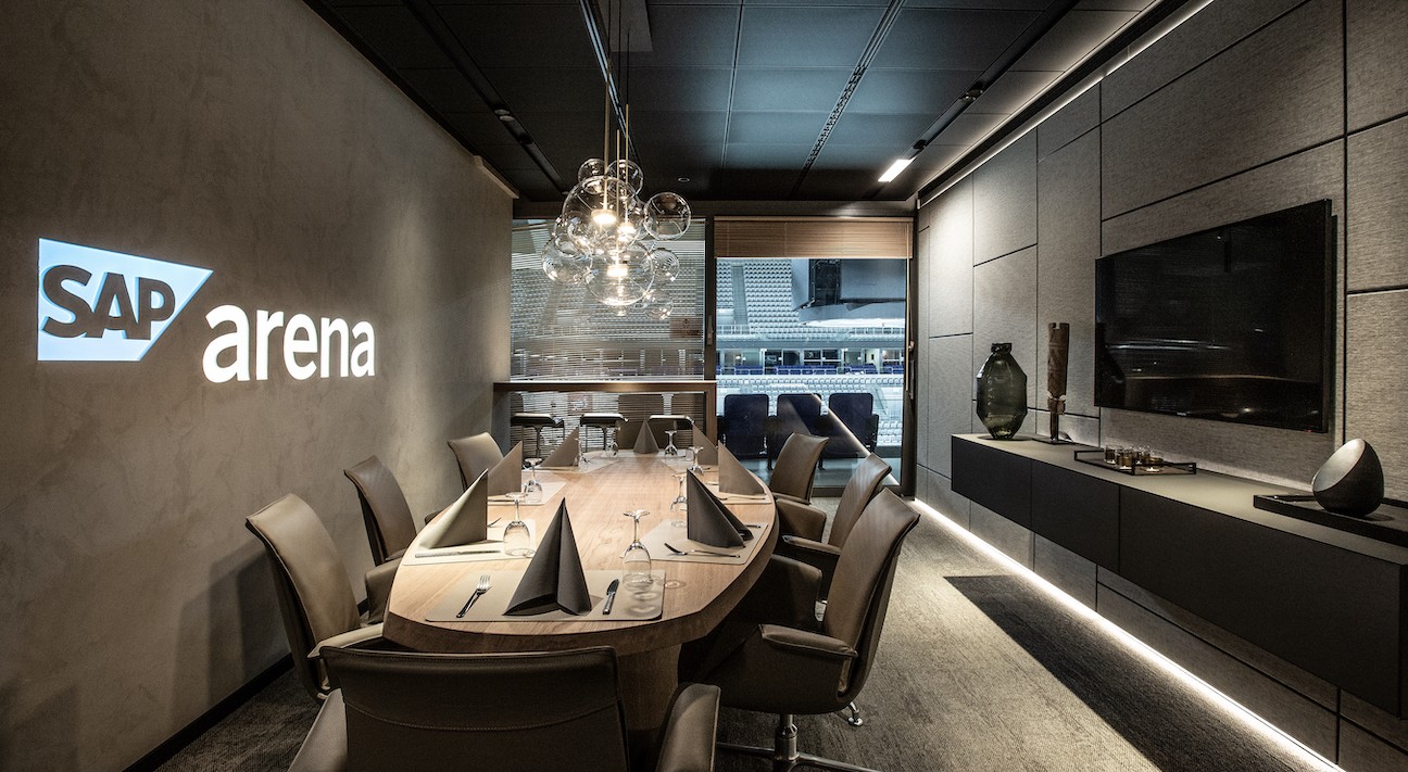 Der Anspruch der Bauherren: Einen Raum schaffen, der nicht nur Geselligkeit während einer Sportveranstaltung bietet, sondern in dem man auch mit Familie und Freunden in ausgelassener Stimmung ein Konzert genießen kann. Natürlich sollte der Raum auch repräsentativ sein und bei geschäftlichen Terminen als Visitenkarte für Businesspartner und Sponsoren dienen. Die Anforderungen: Küche, 6-10 Sitzplätze, Stauraum – dazu Top-Medientechnik inklusive eines großen TV für Präsentationen und zum Mitverfolgen der parallel stattfindenden Eishockey- und Handballspiele.